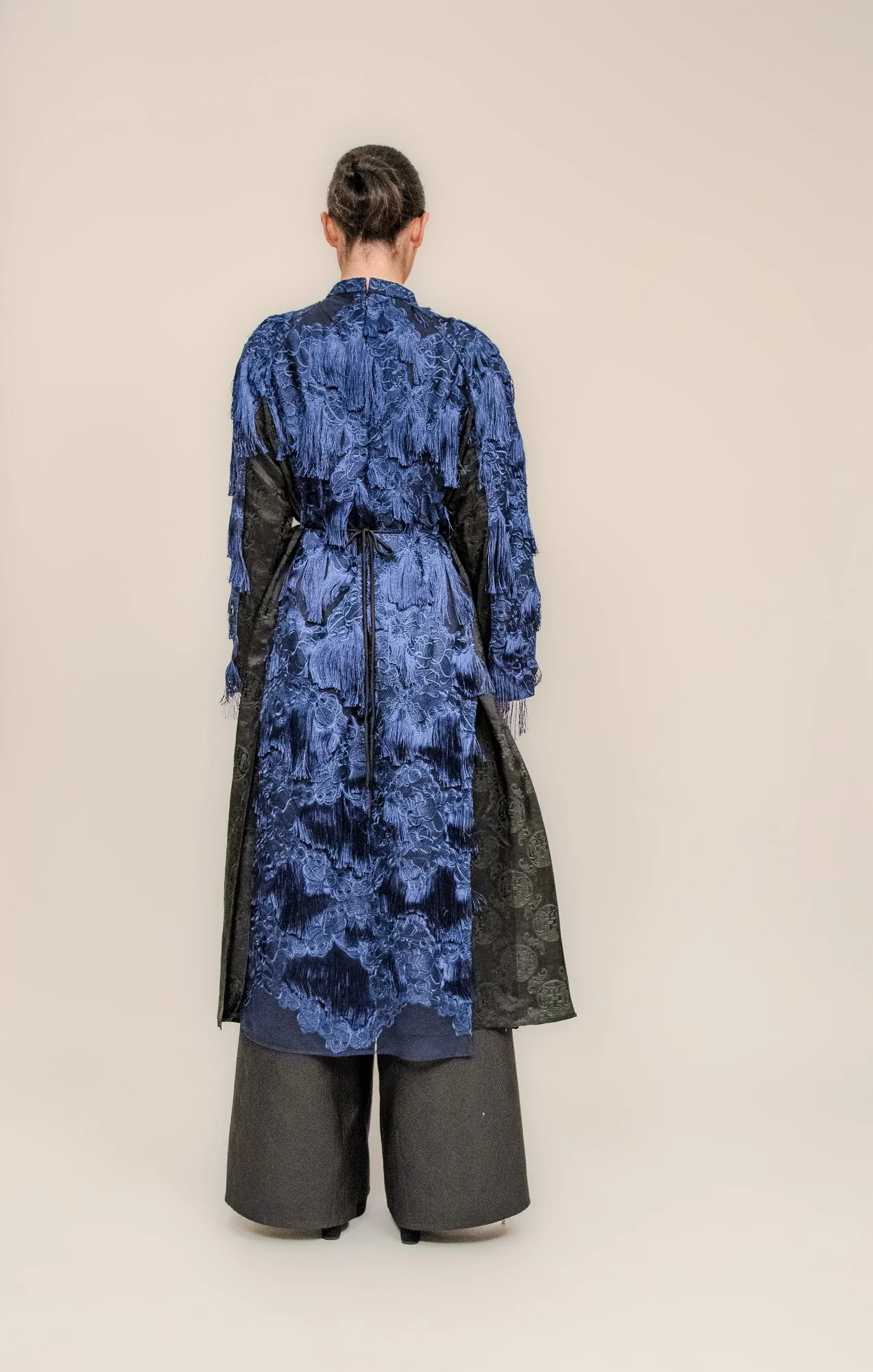 Fabrications: Top Layer Fringe Lace/ Base Layer Silk Jacquard